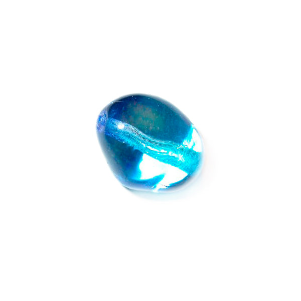 Blauwe doorzichtige glaskraal met flauwe slingerachtige vorm