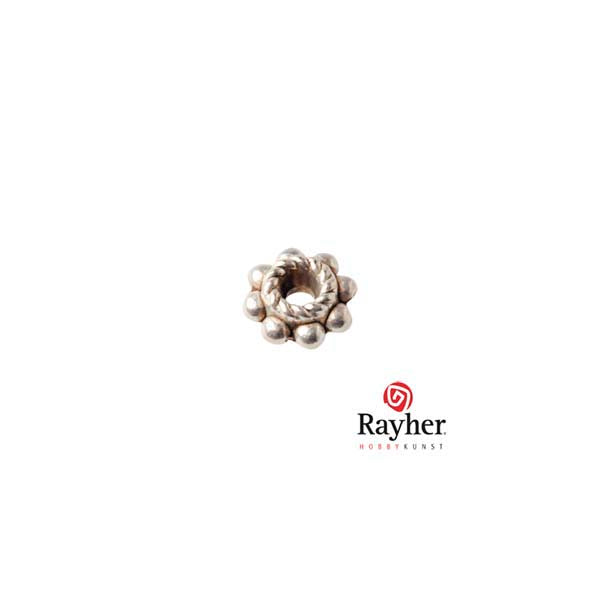 Zilverkleurig metalen wieltje uit de Rockstars serie van Rayher, 6 mm ø, oudzilver, gat 1,5 mm ø.